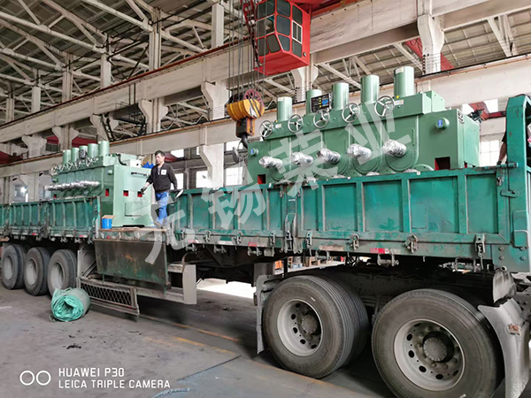 在无锡市荣业矫直机厂车间,YJ400—9+1型钢矫直机经过严格的出厂检测与客户验收后,准备发往客户手中啦。